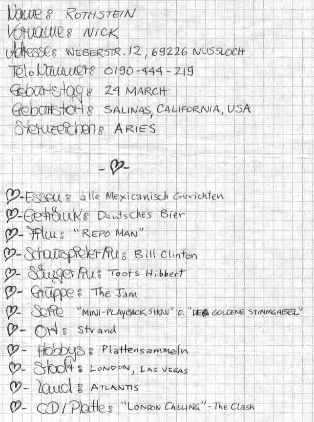 Nick Rothstein, seines Zeichens Sänger und Bassist der Skacombo Loaded, ließen wir in das Steckbriefbüchlein von Kais Schwester Inga einschreiben. Folgendes kam dabei ‚rum: